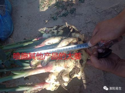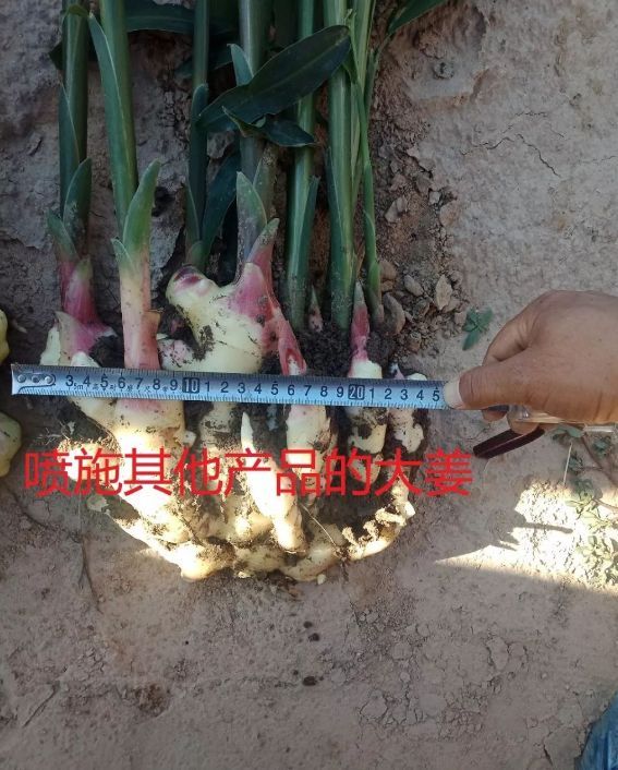我們的市場人員現(xiàn)場挖姜,將噴施地下狂長的大姜與噴施其他產(chǎn)品的大姜現(xiàn)場測量對比,噴施過地下狂長的大姜姜指頭粗胖、連接點粗,不易破盤,姜盤齊整,并且比噴施其他產(chǎn)品的大姜長10cm,高5cm,對比非常明顯。